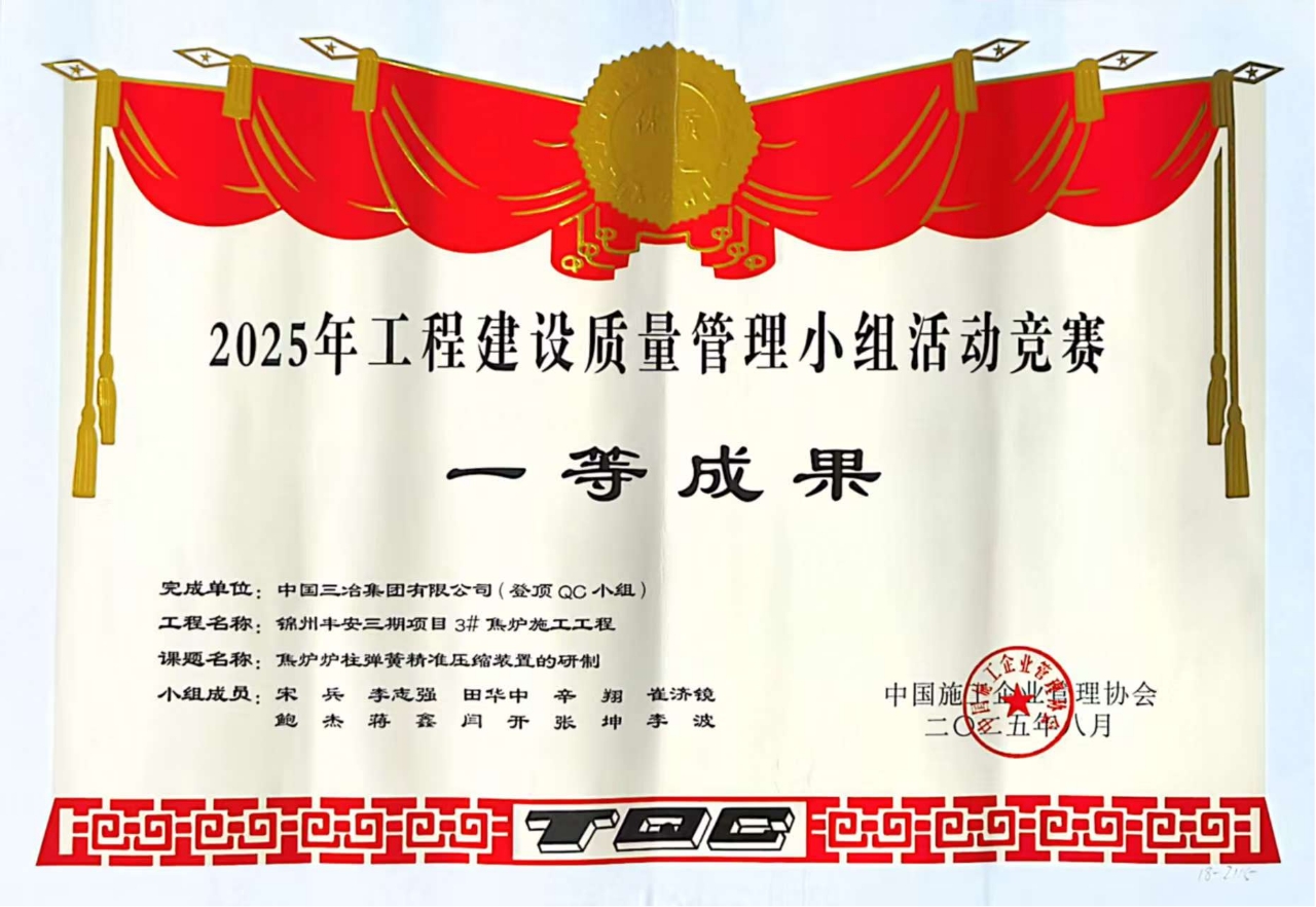 與往年相比,中國三冶今年獲獎數(shù)據(jù)實現(xiàn)多項突破:一等獎數(shù)量同比增長33.33%,二等獎增長50%,創(chuàng)新型成果更是翻倍至4項,增幅達100%。其中,工業(yè)工程公司"焦爐爐柱彈簧精準壓縮裝置的研制"成果,不僅以遼寧省綜合評分第一名的成績斬獲"最佳發(fā)布獎",更通過將彈簧壓縮精度控制在"±1mm"的嚴苛標準內(nèi),為同業(yè)同類工程提供了可復(fù)制的精準質(zhì)量管控方案。這正是中國三冶質(zhì)量管理從"解決問題"向"創(chuàng)造標準"轉(zhuǎn)型升級的生動體現(xiàn)。